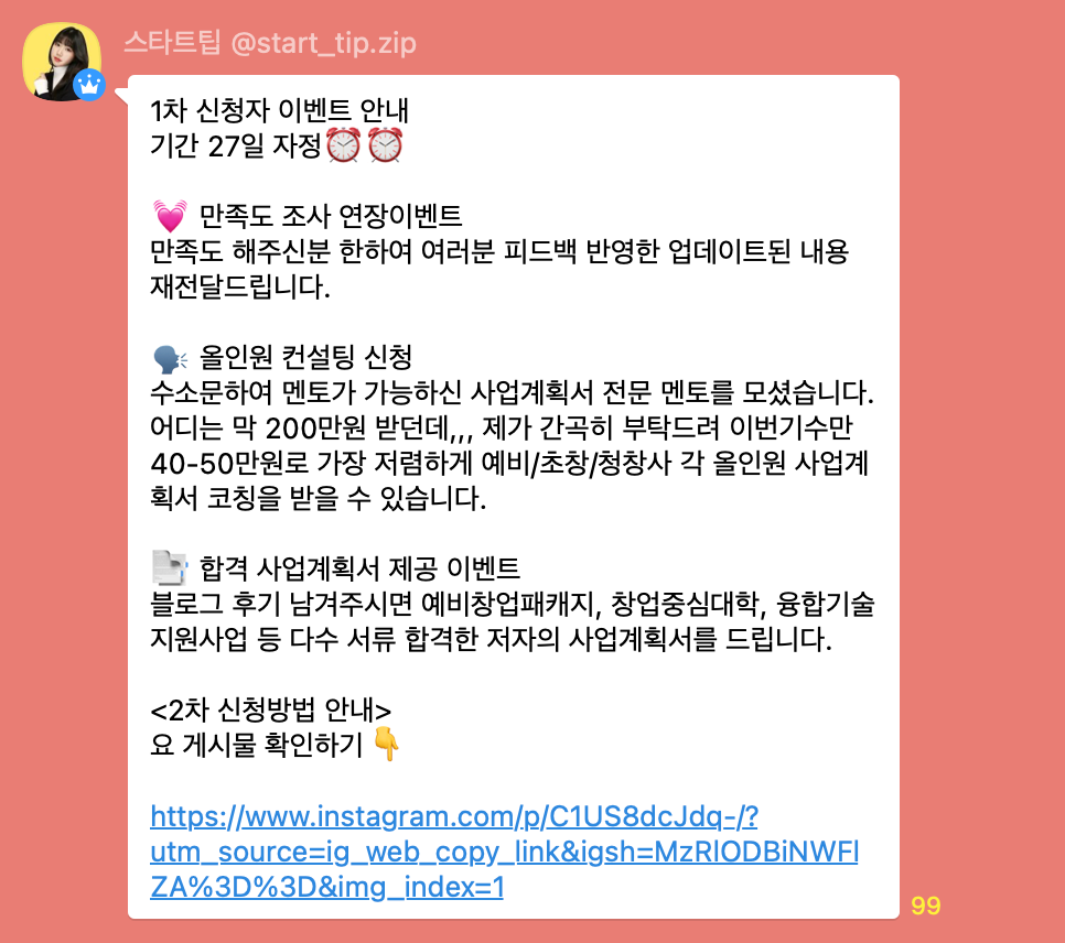 스타트팁님은 인스타를 하다가 알고리즘으로 인해 알게된 분입니다!