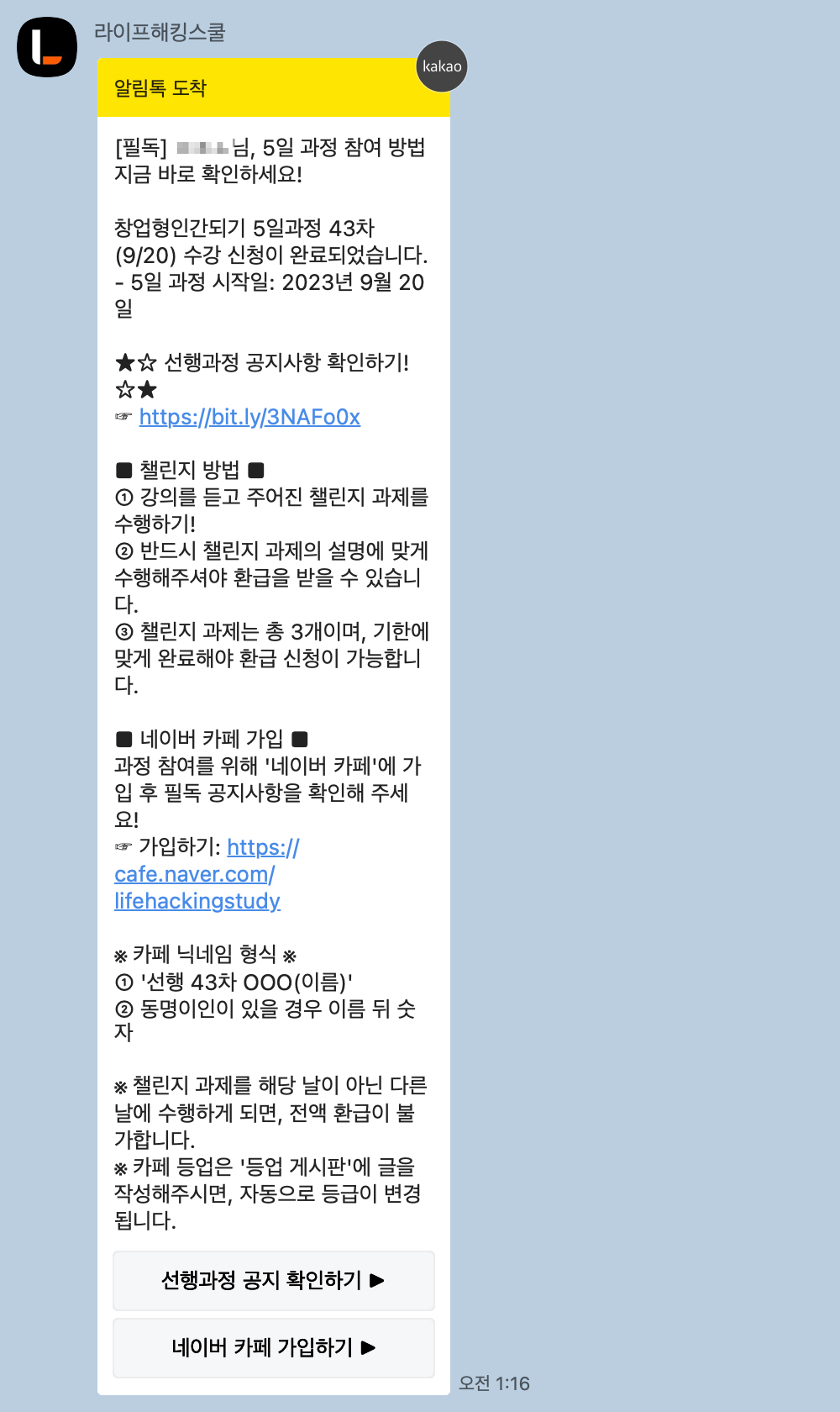 (카페가입도 미리 해놓고, 특히 블로그가 없다면 블로그를 미리 만들어서 수강 준비를 합시다!)